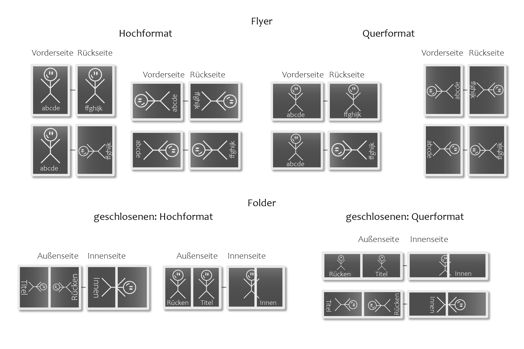 Bei Foldern ist auch zu beachten, dass die Seite 1 aus einem PDF immer die Außenseiten sind, Seite 2 aus einem PDF die Innenseiten.